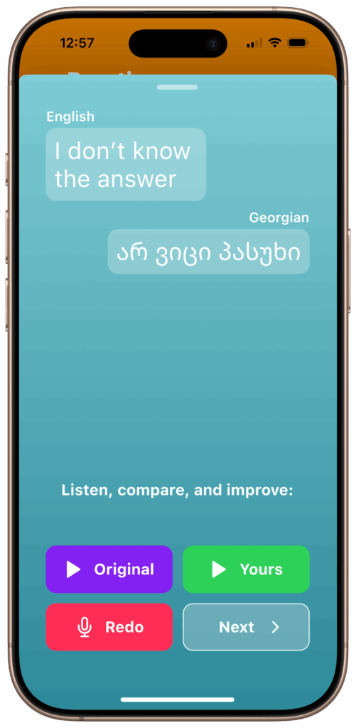 - Notice the difference and try again. Step-by-step towards perfect pronunciation.