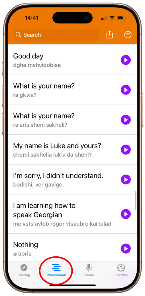 These phrases are now locally on your phone. The app helps students memorise them and optimises practice intervals for efficiency.